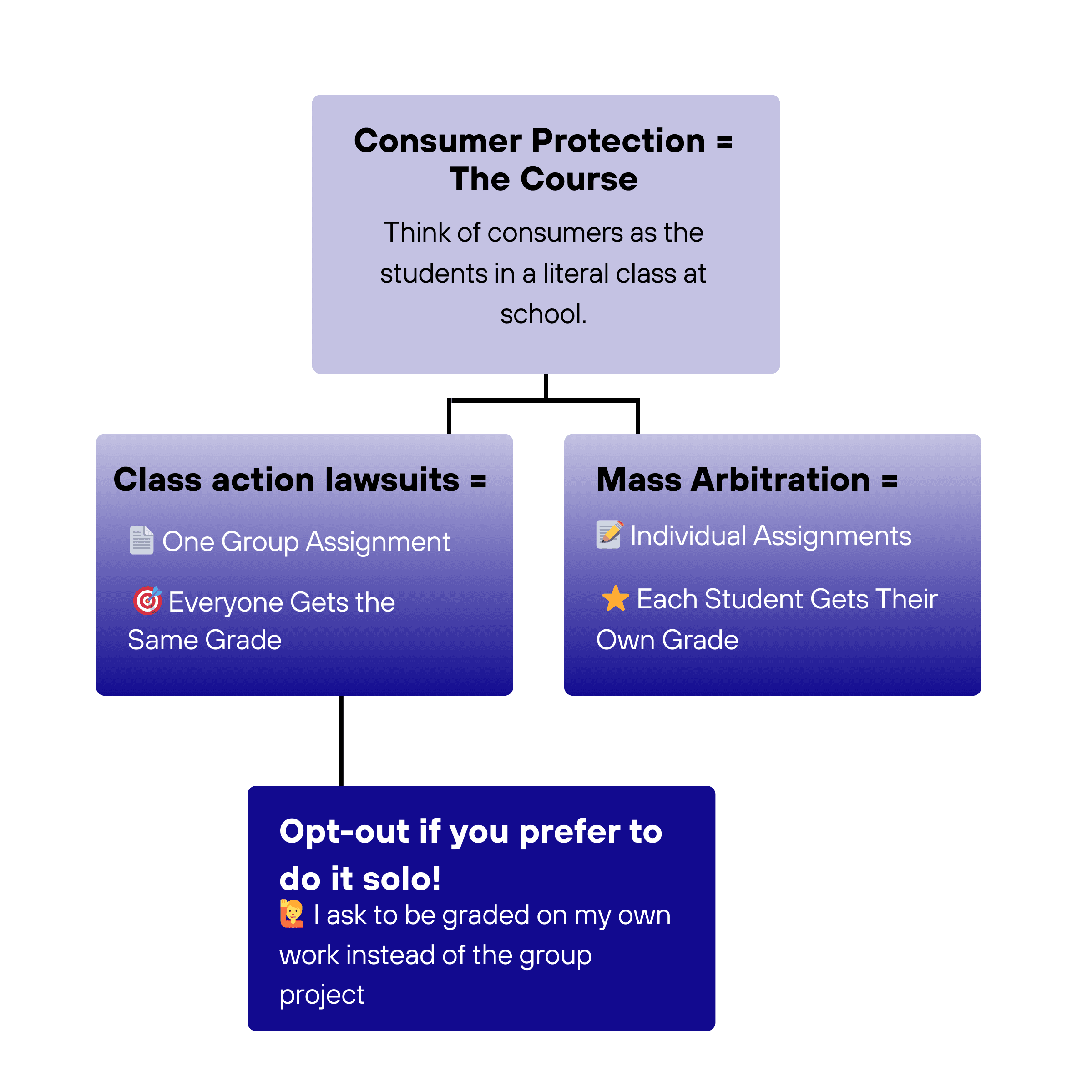 Think of a Class Action Lawsuit like a group project where everyone gets one shared grade. If the group misses the project deadline or the teacher decides not to grade it, the whole group fails the class. No individual do-overs.